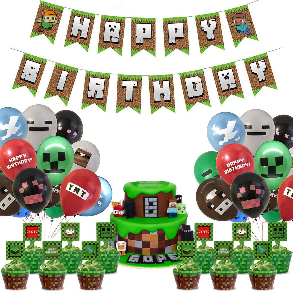 69pcs/set Minecraft Theme Kids Happy Birthday Party ... (Billy Griffin) To craft a cake, you first need to open your crafting table in Minecraft. This banner is my favorite Banner so far on my banner tutorials I have. The banner will be the same colour as the wool you use.